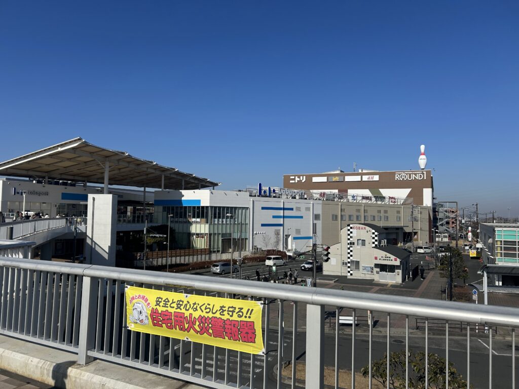 電車で新三郷駅を降りて歩道橋がららぽーとに直結。車の心配をしないで店舗まで歩いていけました。