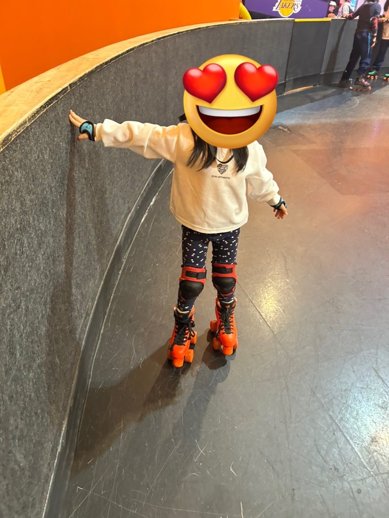 TVCMで見たようなローラースケートリンク。初めてのスケートで苦戦してたけど、なんか楽しかったみたい。
