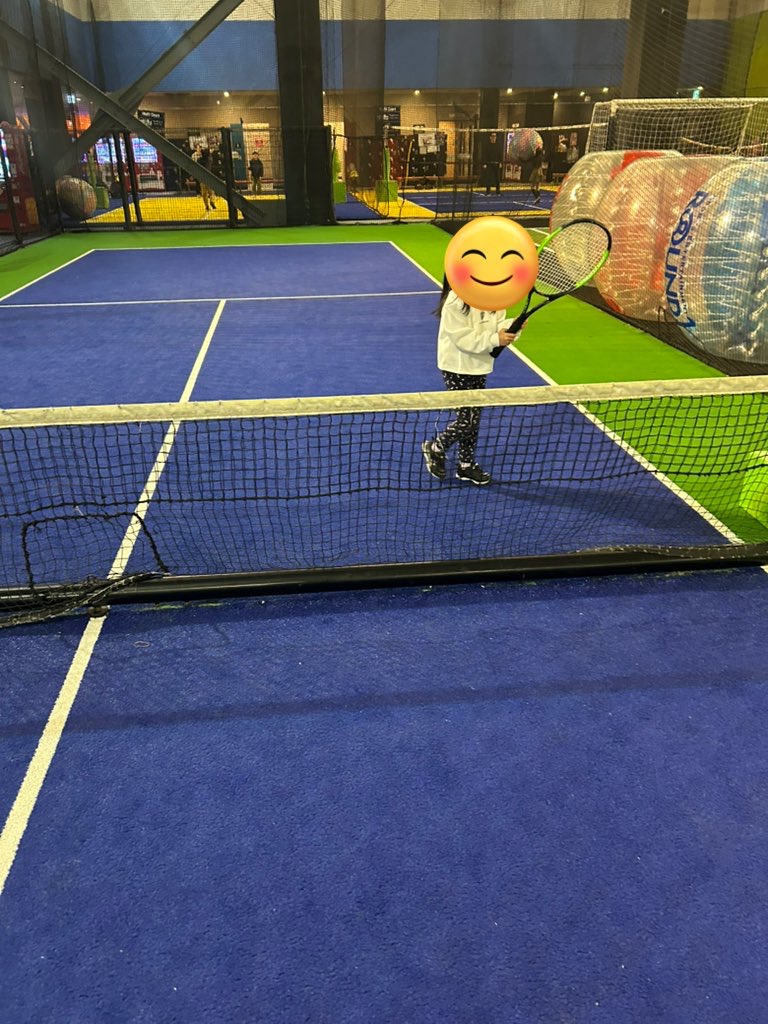 スポッチャに入るとバスケコートやテニスなどの球技。wiiスポーツと違ってむづかしいって…